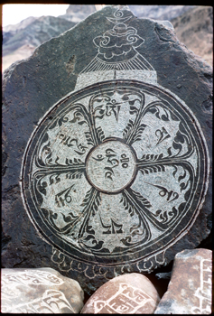 A mani wall is made of mani stones, which are inscribed with "Om mani padme hum", or religious designs.